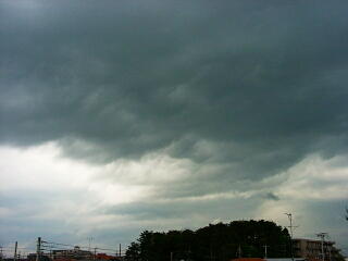 これも,雲の下面がデコボコしてますね。 雲が厚いので,暗いです。 |