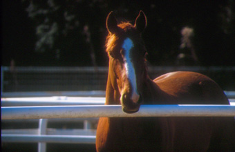 前回同様気合が入った状態での登場。絶え間なく調教 を積んでいるのに8kg増となってしまった。 返し馬の様子からみると道悪はあまり得意ではないみた いだ。 ロードアックスに逃げに全然ついて行けず中段からやや 後方を進み,徐々に追い上げるも最後の坂で伸びず7着。 左の写真はかなり気に入っています。 |