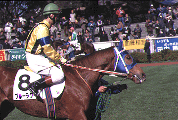 ブルーラグーン:引退。10戦0勝。(障害4戦0勝) マーメイドタバンの弟として購入時は”めざせダービー”と期待したが常に脚元に不安があり 目一杯の競馬ができず放牧へ。障害馬としてターフ復帰ももう一つの弱点である根性なしが災いして常に 4コーナー後方からの一気の差しだけで勝つまでには至らなかった。今後地方で走るようなので中段くらい に付けられれば勝機は近いと確信しています。 |