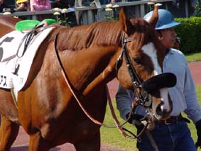 パドックでは前走のような入れ込みがなく良く落ち着いている。 |