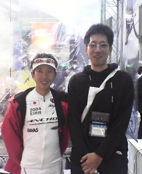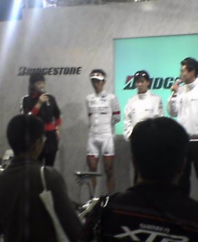 ブリジストンのブースでは、男子ロードアテネオリンピック日本代表の田代選手がプレゼンをしていた。