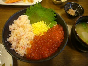 意を決して注文した海鮮丼。toyohikoが今まで生きてきた中で食べたイクラの総数よりも遥かに多いイクラがのっかっている丼ぶり。初めてこんなに大量のイクラを食べたけど、思ったよりすんなり受け入れる事ができマシタ。でも感激する程でも....ごめんなさい。