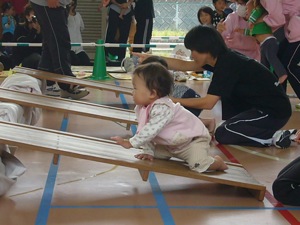そして二回戦。またも3人対決。1人がすぐに脱落。残ったのが同じバーンフェニックス対決。結果は残念ながら持久戦でリクピーの負けデシタ。それなりに素組のバーンフェニックスでは当然無くて、セッティングしたんだけど、相手も同様なセッティングで負けてしまいました。クヤシイ〜。ってなワケでtoyohikoも熱くなってしまう程、ベイブレードって面白いデス。TVゲームとかなんかよりよっぽど面白いと思うな。こっちの方が健全な遊びな気もするね。2歳のソウタでもベイを回せて一緒に楽しめるし、ベイ1個の値段も500円ぐらいで手頃なのが良いですね。ほら、子供達から「3,2,1、go〜シュ〜ト」って掛け声が今日も聞こえてくるよ。