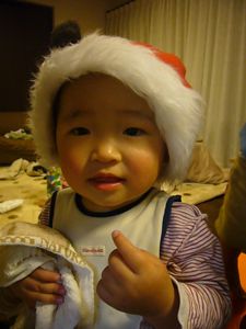ヒヨリンは「私がサンタよ〜」って感じで楽しんでマス。全くもってクリスマスプレゼントって意味は全然分かりません。とにかくみんなが楽しい雰囲気なのでそれを感じとってニコニコしてマシタ。そんなワケで今年もtoyohiko's familyにはサンタは実在するのデシタ....。