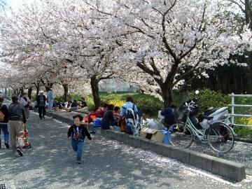 と言っても酒のせいではない(と思うのだけど!?)。子供達MAX6人と遊んでいたり、写真班として動きまわっていたり、親父達ソフトチームの花見グループにとり込まれたり、マッキ−ズ町内会の花見グループにとり込まれたり、出店にいったり等など、精力的に活動していたため、Prettyメンバーとはろくに話しも出来なかった。まぁ別に改めて話す事などないのだが・・・。そのかわり、いろいろな所で酒だけはたらふく頂いた。