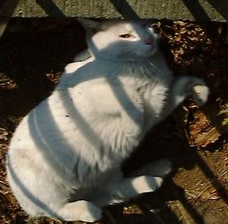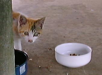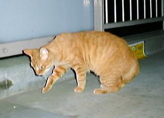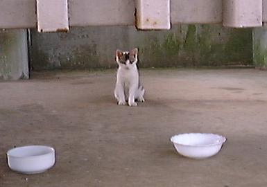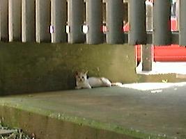 「久しぶり」 2000/10 宿舎でたたずんでいるところを見つけました。なでられて嬉しそうだったんですが、全体的に少し警戒気味でした。う〜ん。半分忘れられているらしいです。(^^;