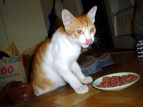 「とら」 '99/9 ぺろりと餌を食べた後は、小物で遊ぶのが大好き!
