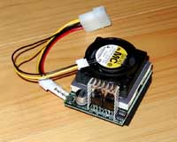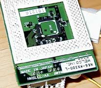 CPUにAMD社のK6-U-300MHz(分解して確かめたわけではない)を使用し、下駄にHK6LCL−AA型番のものを用いたメルコ社製オーバードライブプロセッサ(ODP)である。 この製品について、メルコのカタログやホームページでは一切のアナウンスがない。HK6-MXシリーズは、末尾がN型番(つまりN下駄使用)の物のみである。秋葉原のソフマップ中古センターしか見かけなかった白箱でもあることから、このODPはメルコがバルクとして流した物ではないだろうか。 説明書にはPC9821シリーズへの取り付け方しか記述がない。もちろんユーティリティも98シリーズ用の物しか同梱されておらず、完全なNEC PC9821用であることが窺われる。 次に下駄の部分をもう少し詳しくみてみる。 |
