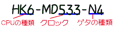 | このオーバードライブプロセッサ『HK6−MX300−L』は、マニュアル及びドライバはPC98用しか入っていないもののDOS/Vにも対応しているのではないだろうか。 メルコのオーバードライブプロセッサに対する型番の付け方から推測してみよう。N3ゲタ、N4ゲタなどの存在が確認できているので次のようになる。 |