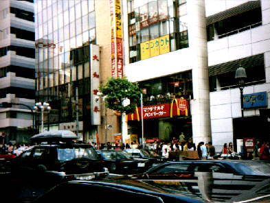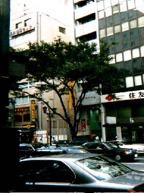住友銀行の隣の細長いビル。ボーリング、ビリヤード、カラオケの待ち時