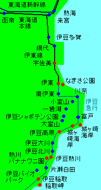 15時11分、伊豆熱川駅着(\400)。 ここで下りた理由は一つ。 |