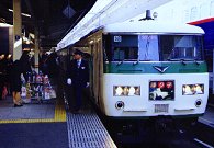 | 東海道線の電車が来ました。 ここで運転士が交代したのですが、 下りたのも乗ったのも、伊豆急の制服を着た女性運転士。 |