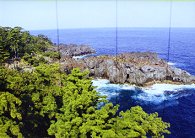 13時46分、城ヶ崎海岸駅着(\580)。 このログハウスの駅舎も、若い人でにぎやか。 以前ここから海岸まで歩いたところ、 エラく遠かったのを覚えているので、 今回はタクシーを使わせていただきます。 |