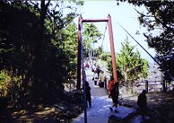 | 「半四郎落とし」のつり橋。 昔、半四郎という漁師が誤って 転落したことから、 その名がつけられています。 |