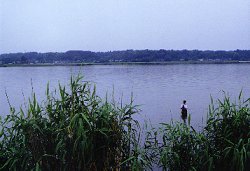 田んぼのあぜ道に入って、湖畔まで来ました。