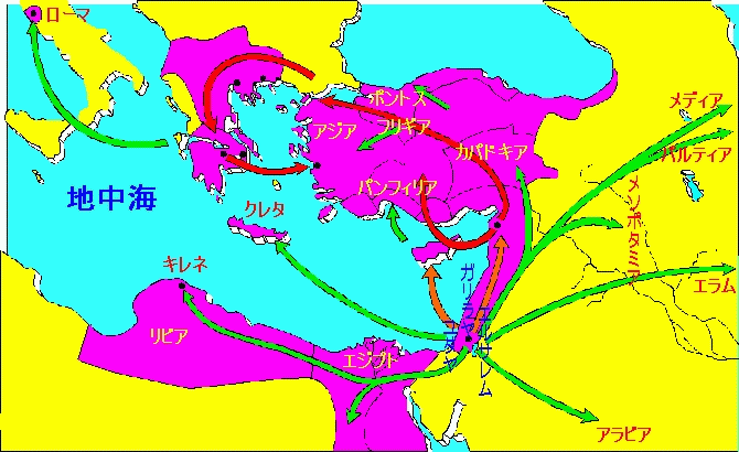 2:11 ユダヤ人もいれば、ユダヤ教への改宗者もおり、クレタ、アラビアから来た者もいるのに、彼らがわたしたちの言葉で神の偉大な業を語っているのを聞こうとは。」