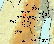 13節 この日・・・イエス様がよみがえられた日。日曜日でしたが、当時の安息日は土曜日でしたので、旅行は禁じられていませんでした。 スタディオン・・・1スタディオン=約185m エマオ・・・場所についてははっきりわかりませんが、エルサレムの西北だと考えられています。