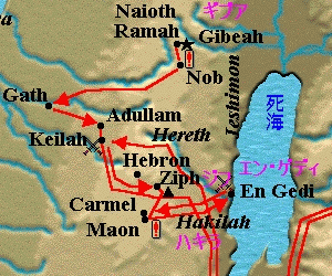 24:2 ペリシテ人を追い払って帰還したサウルに、「ダビデはエン・ゲディの荒れ野にいる」と伝える者があった。