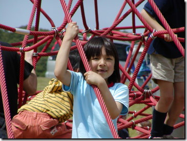わんぱく広場はチビッコに大人気!千佳もロープジムでおおはしゃぎ。 |