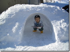 奥玉のお庭で「かまくら」を作りました