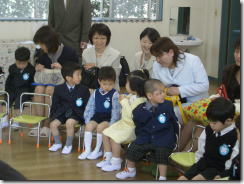 入園式が始まるまでお部屋で待機。恵太はちょっと緊張していたのか他の子よりおとなしかったです