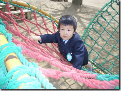 式が終わったらさっそく園庭でお遊び。 立派なスーツが汚れないかとヒヤヒヤしました。