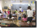 今日は、小学校の初めての授業参観がありました。 1時間目(生活)と2時間目(算数)の授業にお父さんとお母さんが交代で来ました。生活の時間では、アサガオの観察についてみんなでいろいろ話し合いました。2時間目の算数では「10」にするためのいろいろな遊びもありました。 | |