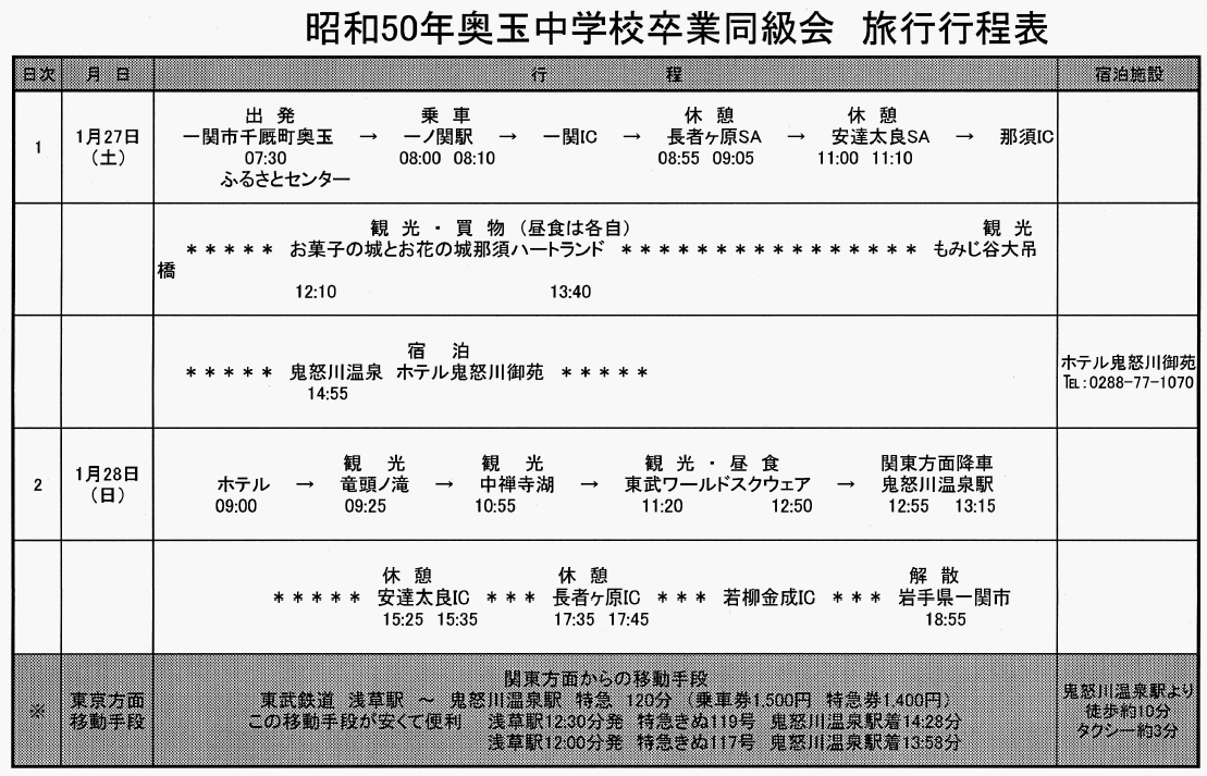 旅行行程表