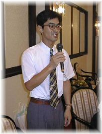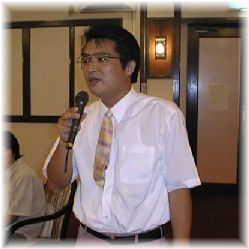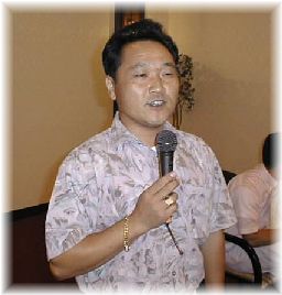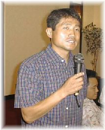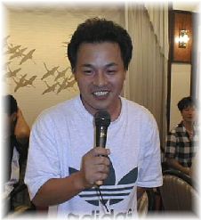 菊田 裕次 住所:神奈川県綾瀬市深谷 コメント:三上君が最初に「やあ!」と声を掛けたのは私です。たぶん初めての参加だと思います。今までは仕事の都合で出席出来ませんでした。今日は皆さんに会えるのを楽しみにして来ました。加藤浩昭君とはすぐ近所ですが、決して遊びに来る事がないように! IBMに勤務しており海外出張も多いようです。仕事上英語を話す事が多いそうです。 | ![]() |