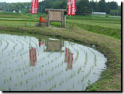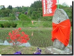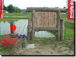 むかしむかし西の国に信仰心の尊い、兄弟がいました。 ある時のこと兄弟は、不思議なことに同じ夢をみました。 それは日頃から信仰していたお地蔵様が夢枕に立ち「景色の良い所に出るまで、東の国に向かって兄弟で旅に出なさい。」という御告げを受ける夢でした。 そこで兄弟は夢を疑うことなく、早速翌朝に旅支度を整え東へ東へと歩き始めました。 山を越え谷を渡り水の音を聞きながら、山あいの静かな所にたどり着きました。 そこは水に恵まれ、遠くに目を向けると心休まる穏やかな姿の山がそにえて、この場所こそが地蔵様が示された場所と確信し、兄弟はそこに落ち着くことに決め、旅の荷を降ろしました。 兄は小高い所にあるお寺のお坊さんとなり、弟は兄の寺から見える向かい側に居を構えました。弟はくる日もくる日も田畑を耕し、田圃を作って、米作りに一所懸命働きました。その甲斐あって秋には、たわわな稲穂が実り、お坊さんになった兄と「これはお地蔵さまのお陰に違いない。」とお米を地蔵様に奉納するため、稲をまたがないで植えられるように丸い田圃を作り、一筋に渦巻き状に植え収穫したお米をお地蔵様に韋駄天(いだてん)様に奉納しました。 その後、不作の年でもこの丸い田圃だけは稲穂がたわわに実り、末永く地蔵様に感謝しながら幸福に暮しました。このことにより世の人々は誰言うことなく「地蔵田」と呼ぶようになりました。