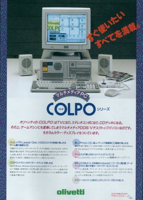 | 家庭用TVにも接続でき、SVGA出力ができたそうです。と言ってもヨーロッパの話ですから、PAL規格だったので、日本のTV(NTSC規格には繋がりませんけど.... もちろん、PC用のRGBコネクタもありました。 i486DX4-100MHzのモデルとPentium-75MHzのモデルがありました。 | |