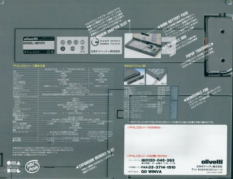 | オプション | 4 MB 増設メモリー (EXM 486SL-04/R) ¥32,000 | 16 MB 増設メモリー (EXM 486SL-16/R) ¥160,000 | 内蔵120 MBリムーバブル・ハードディスク (HDU-120/R) ¥58,000 | 内蔵240 MBリムーバブル・ハードディスク (HDU-240/R) ¥68,000 | 内蔵340 MBリムーバブル・ハードディスク (HDU-340/R) ¥78,000 | 内蔵510 MBリムーバブル・ハードディスク (HDU-510/R) ¥125,000 | RS232Cケーブル・アダプター(DB9P-DB25S) (CBL-KIT/A) ¥2,000 | ドッキング・コネクター・リプリケーター (DCR-01) ¥15,000 (パラレル/シリアル/キーボード/マウス/ディスプレイ 各AT互換ポート) |