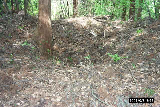 ![]() | こんな古墳にも盗掘孔がある。本当に前方後円墳だとすれば当然埼玉県はおろか、日本最高所にあるものということになるかもしれない。 |