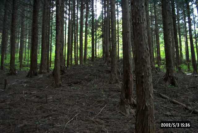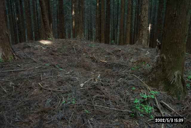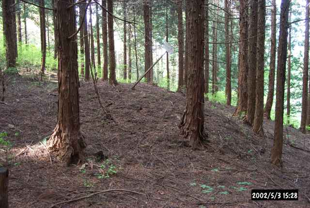 | 墳頂の盗掘跡らしきくぼみ。この群のいずれの古墳からも出土遺物は何も伝えられていない。 | ![]() |