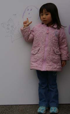 ついで、大泉小学校へ移動して、シールをもらったり、壁にお絵描き