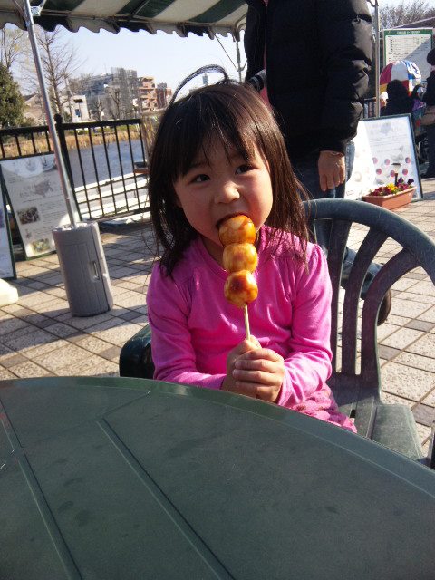 団子にかぶりつき