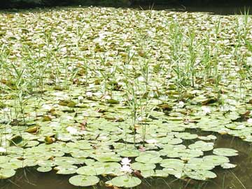 三宝寺池側の池面に、睡蓮が綺麗に広がっていました