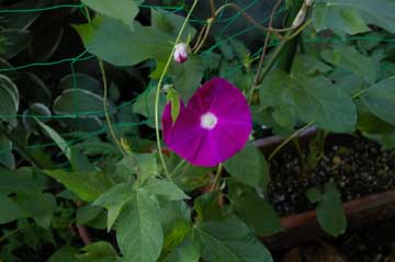 なんだけど、ネット+緑のカーテンの前に、アサガオが咲きまくり