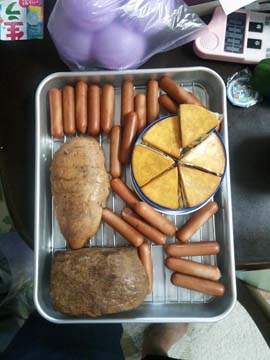 今回は、いつもの鶏ムネ、ソーセージ、チーズに加えて、豚バラにチャレンジ
