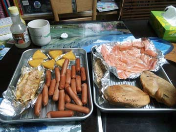 スモークサーモンモドキ→燻製時に氷を入れたビニールの上にスモークを置いてスモーク。