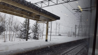 見た後に、すぐに恵庭に移動するが、ますます吹雪に。横殴りの雪