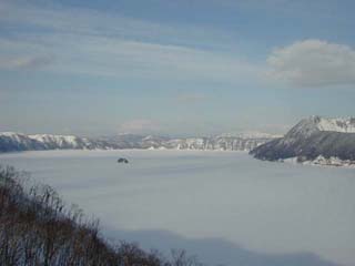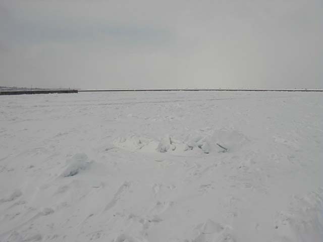 この流氷のおかげでカニ漁の船が出せないそうです.