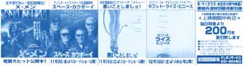 右側のの「ダンサー・イン・ザ・ダーク」と「十五才」は1つの割引券で裏と表に印刷してあります。 |
