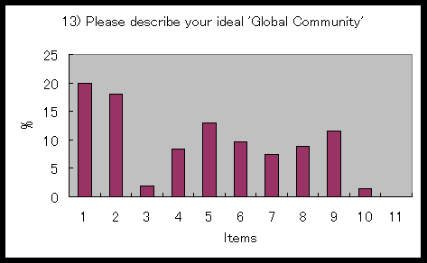 3 ) “What was the most trouble thing for you there ?”4 ) “Could you get accustomed to the native life ? and why ? “6 ) “What kind of difference did you find between a Japanese and the natives ?”7 ) “Did you make some effort to stop that gap ?”8 ) “What have you found or discovered there, in the natives’ lifeor at the native school life ? “9 )-1 “By your experience what do Japanese people boast ourselves of ? ”9) ?2 “By your experience what are we ashamed of ? “10 ) “Could you tell me how we’d better behave comparing with the natives ? ”11 ) “Please tell me the natives’ thought or opinions which you thought better.”12 ) “Do you have any maladjustment at your school in Japan ?”13 ) “What is different between the native school / overseas Japanese schooland the school in Japan ? ”15 ) “By your experience what is ‘cosmopolitan’ ? “ |