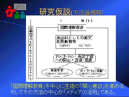 つまり、「(新)学力観では知識・技能・情意面のうち「情意面」の育成が叫ばれているわけで、それは「興味、関心、意欲づけ」に他ならない。 よって、国際理解教育が生徒の興味関心意欲を高めるものでなければならない。」と考える。