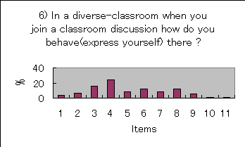 Items: 4 = 'Try to understand others', 3 = 'Keep silence', 6 ='Behave cheerfully',8 = 'Take other's thinking & customs & opinions'