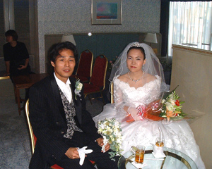 | 控え室で式を待つ新郎新婦、見せ物状態ですね | 新郎は緊張気味、新婦は緊張感が欠けていたような |