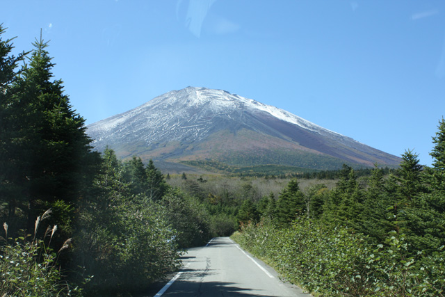 | このように真正面に富士山が見えてきます。 全面舗装でつまらないですが景色は最高です。 後で解ったのですが途中に林道鷹丸尾線の 分岐が有りました。 |