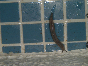 | ここに引っ越して来て、はや1ヶ月。 梅雨の時期になり、毎日ジメジメしてきた。 ある日、お風呂に入ろうとしたら、あまりうれしくない来客がとうとう我が家にも現れた。 害はないと思いつつも、何となく気持ち悪い。 逃がしても逃がしても、1週間位ずっと通ってきた。 同じなめくじか??? |