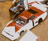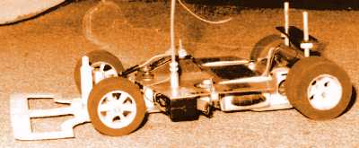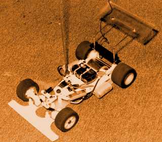 プラボディは破損が激しいので、なるべく強靱なクリヤボディを、と思い製作したのがこれです。メーカーはクライマックスというところで、もともとは12分の1のGPカー用のもので、ポリカも厚くクラッシュにも強かったのでした。シャシーは基本的に934のままですが、左右のボディキャッチを3ミリビスを利用したものに変更しているほか、前後にもアルミ板を曲げて作ったボディキャッチを新設している。写真はミツコシGPに初参加したときのもので、バッテリーは軽量化をねらってマブチ・スーパーセルをバラした600ミリ。ガムテープのパックがおしゃれかもしんない(^_^;)